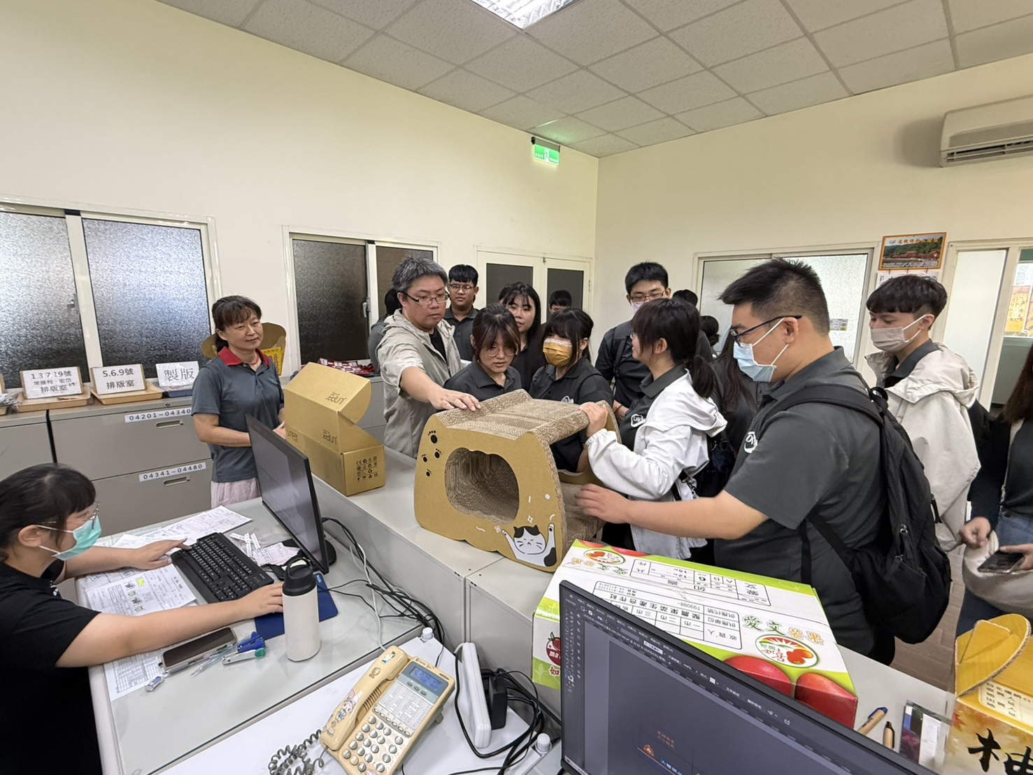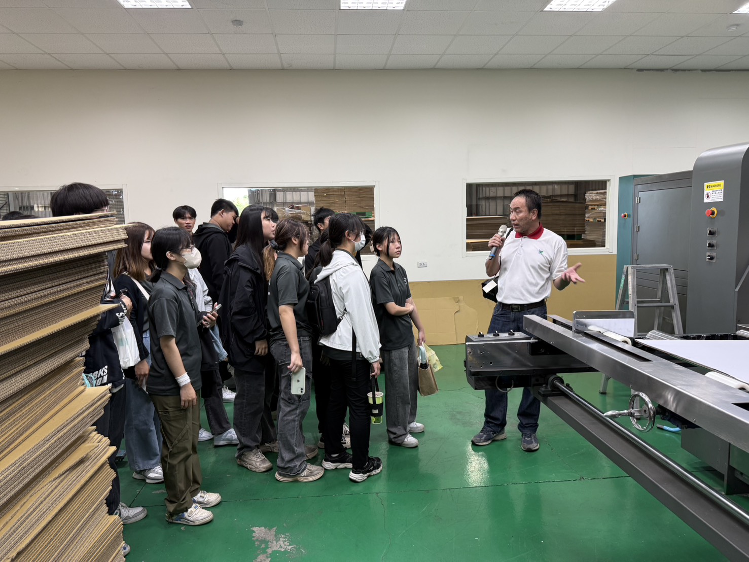 活動中,我們安排了工廠導覽與流程講解,讓學生完整認識從 接單、美工製圖、製版到生產出貨 的一條龍作業模式,體會印刷產業背後所需的嚴謹分工與專業技術。同時,我們也展示了多樣化的彩色印刷樣盒與專業製圖軟體應用,期望學生能夠從中汲取課堂以外的知識,拓展職涯規劃的可能性。